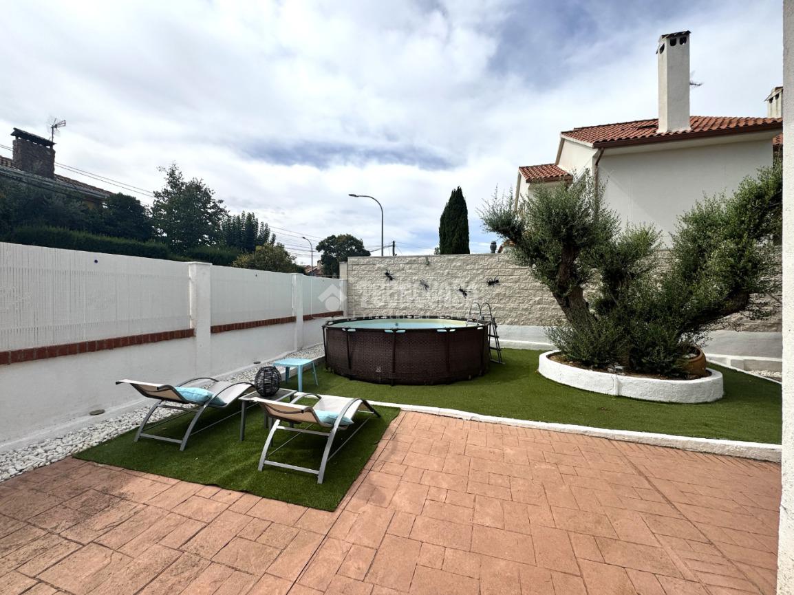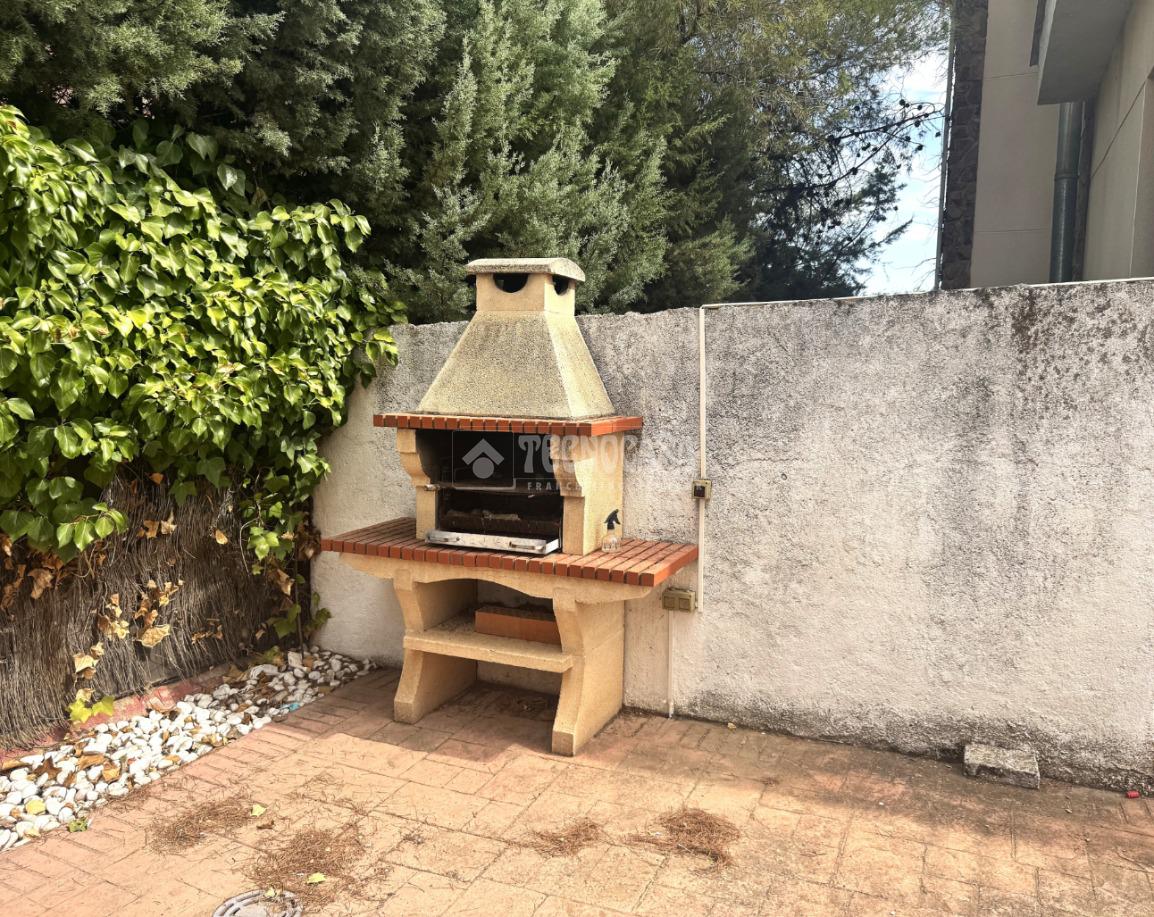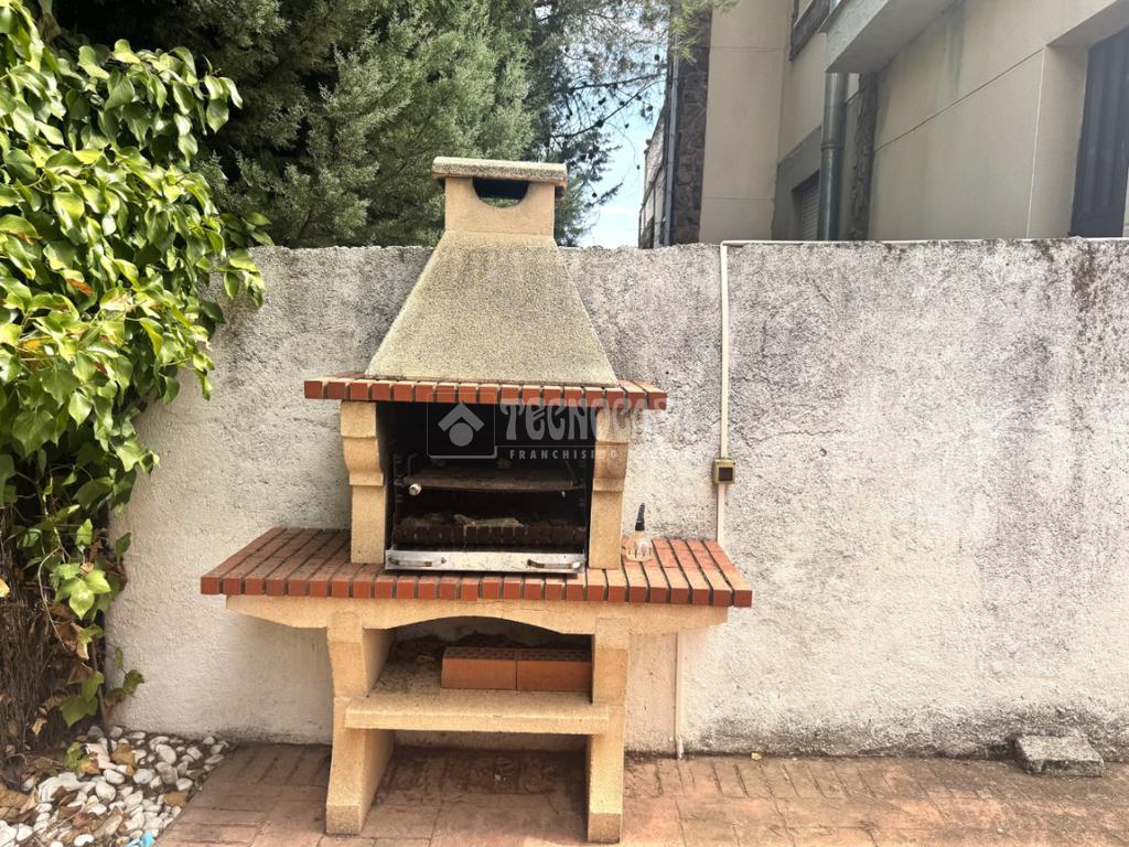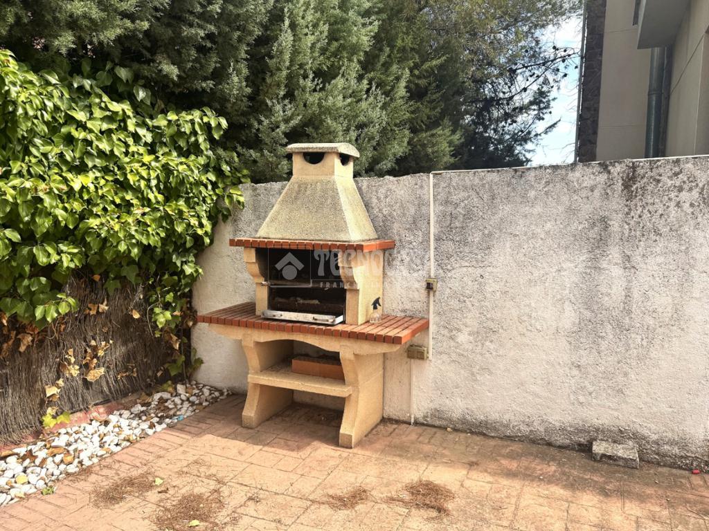 La propiedad se asienta sobre una parcela de 400 m² totalmente vallada, con muro perimetral y puerta eléctrica de acceso para vehículos, lo que permite estacionar cómodamente dentro de la finca. La parcela cuenta con un pequeño espacio de césped artificial y el resto está acabado con baldosas/pavimento, lo que la hace muy práctica y de fácil mantenimiento. Además, dispone de barbacoa de piedra, ideal para reuniones familiares y comidas al aire libre.
